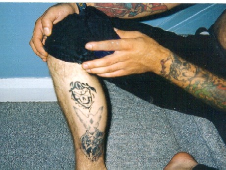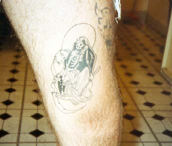 And now one of my favorite line of prints. Skulls!! I love doing these (probably cause they're easy and look good). This is my leg here.